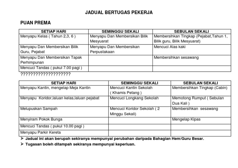 Ejercicio De Jadual Tugasan Bilik Masakan